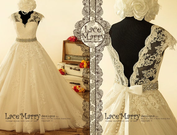 Wide A Line Wedding Dress With Vintage Alencon Lace Applique Etsy